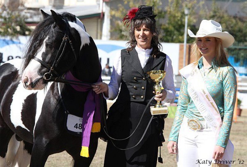 The Painted Warrior of High Street takes Champion Pinto stallion at QLD Royal Show 2012, handled by Philippa Priestly.